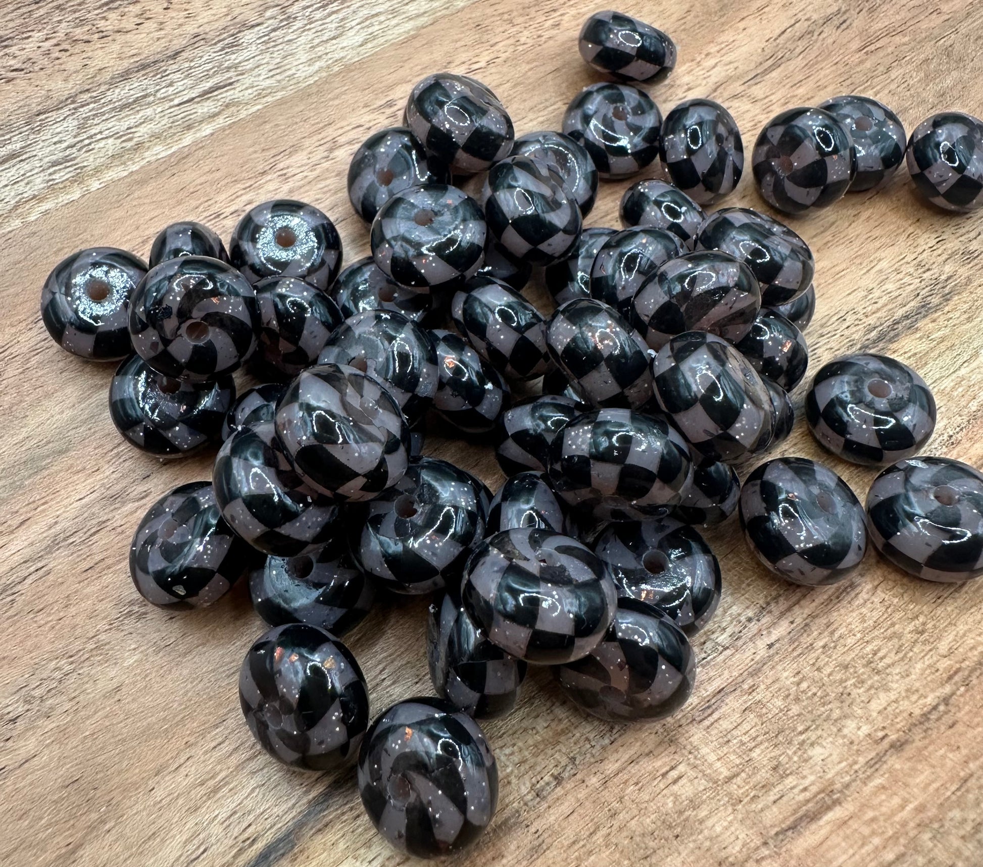 Brown Checkered Liquid- Silicone Bead Abacus 14mm