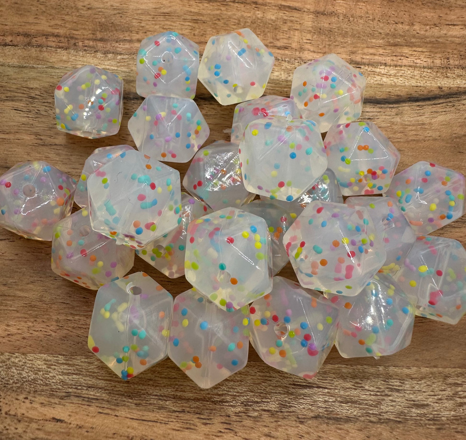 Clear Rainbow Confetti- Hexagon Silicone Bead 15mm