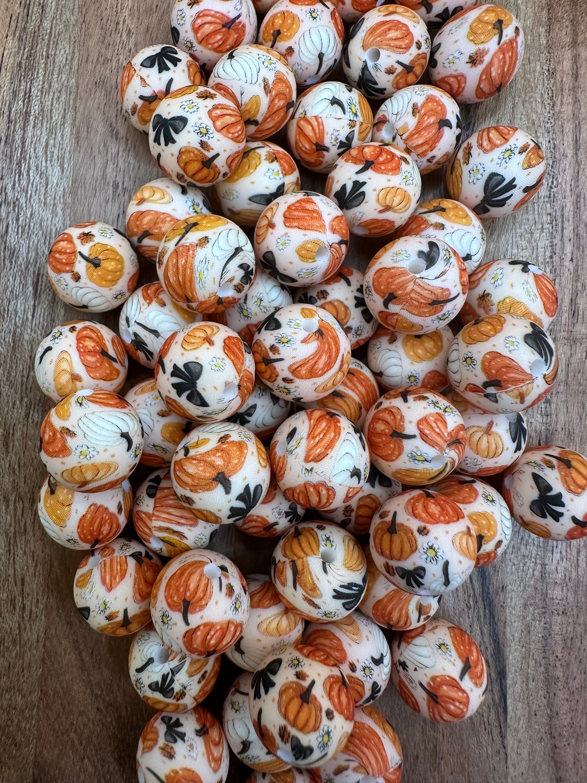 Pumpkins & Bows Print- Silicone Bead 15mm