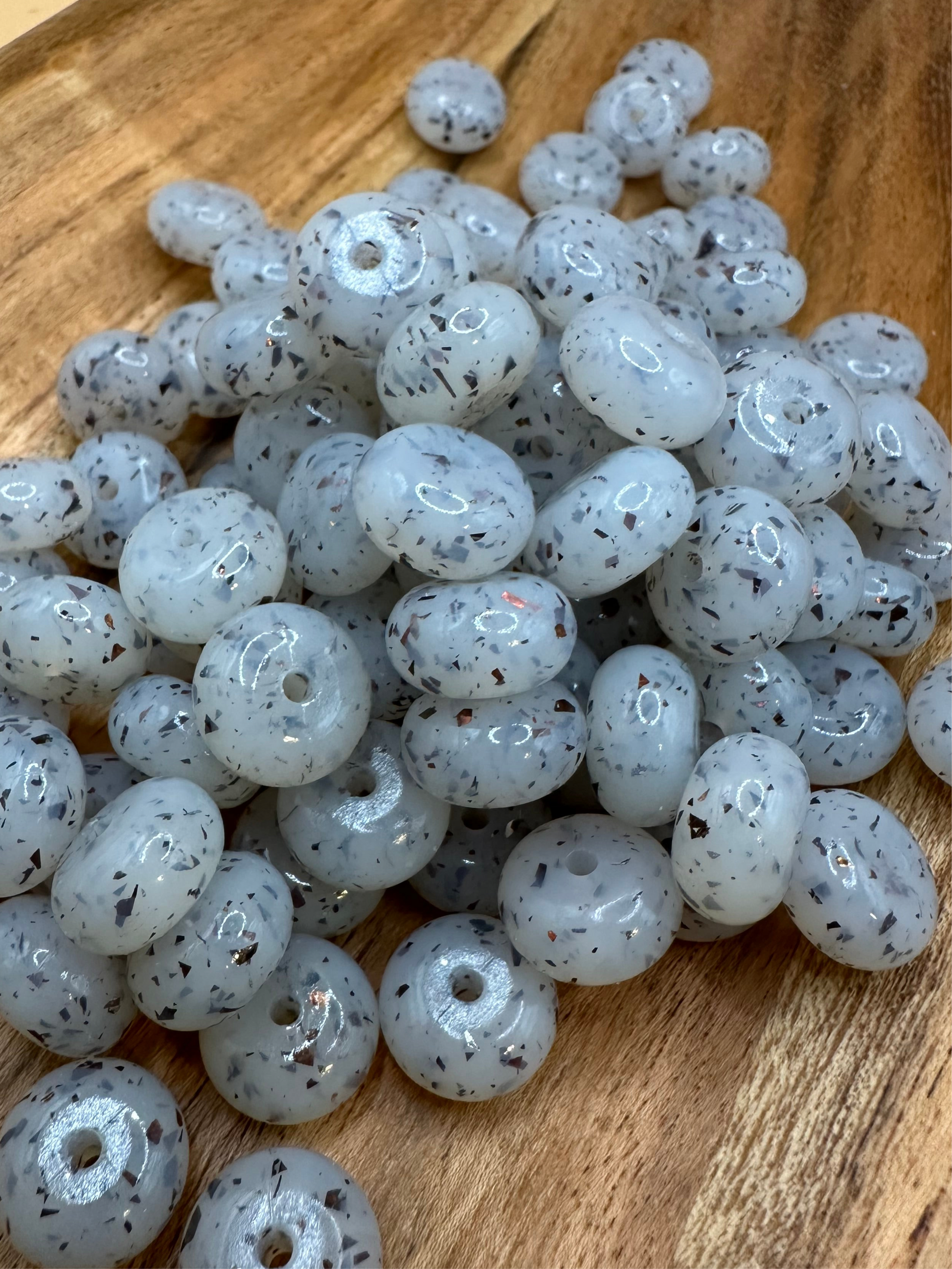 Clear & Black- Speckle Silicone Bead Abacus 14mm