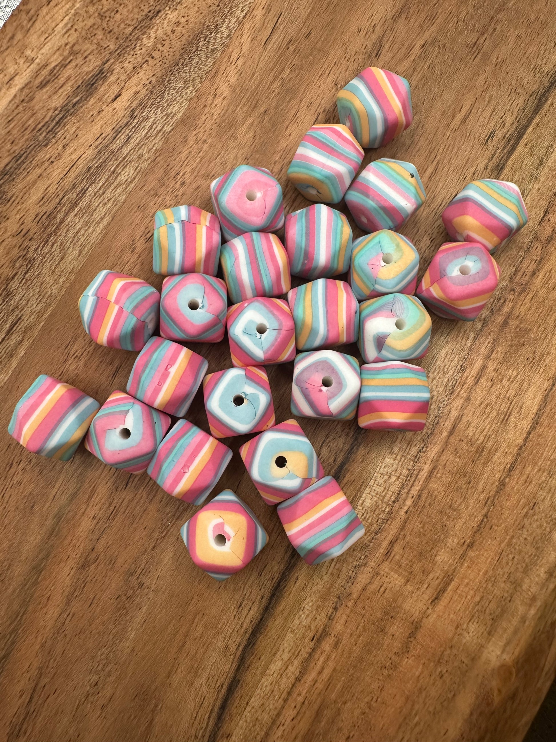 Pastel Stripes Print- Hexagon Silicone Bead 15mm