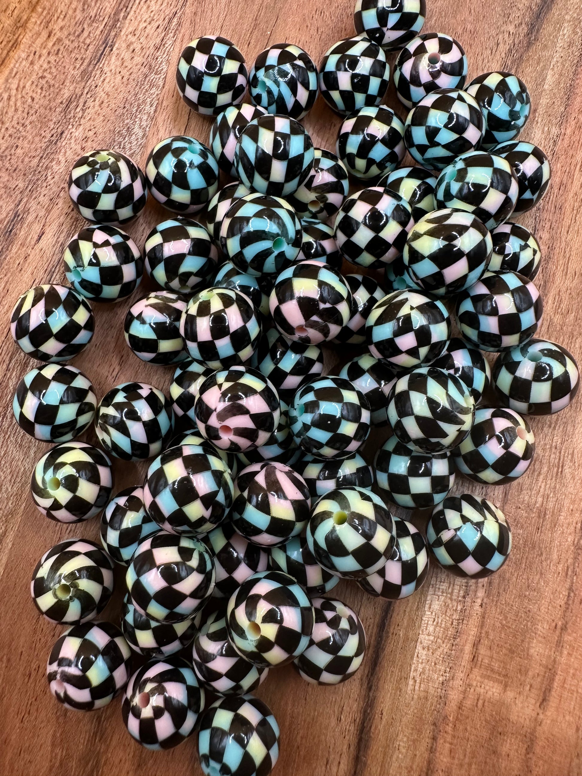 Cotton Candy Swirl Liquid Checkered- Silicone Bead 15mm