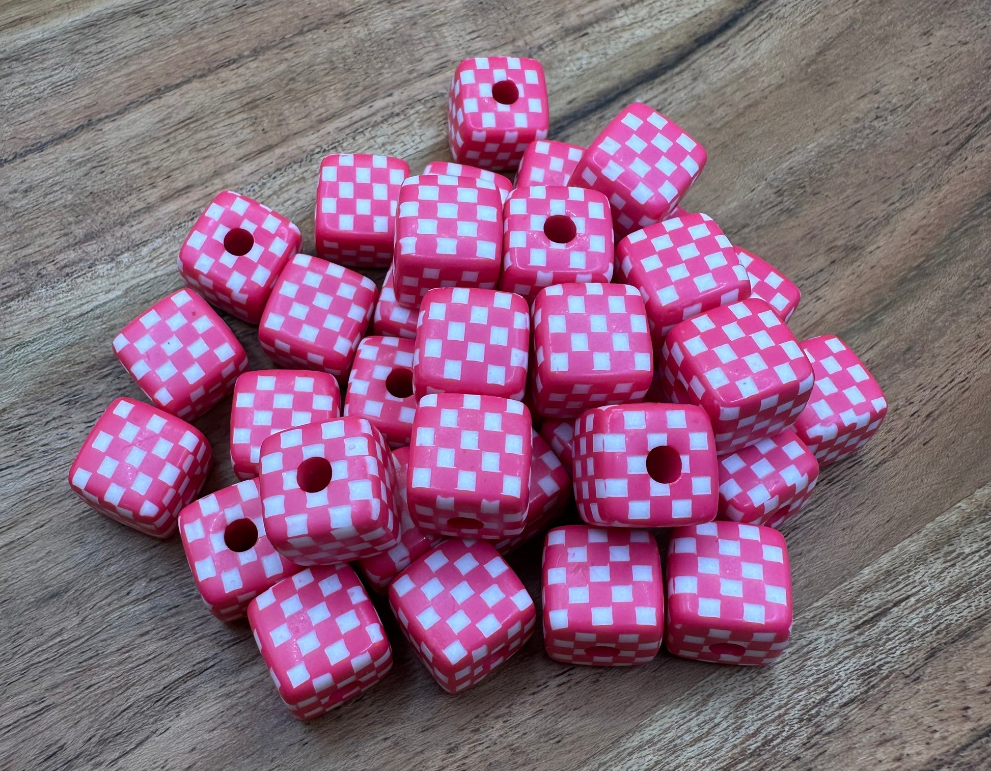 Hot Pink Acrylic Checkered Cubes- Speciality Beads