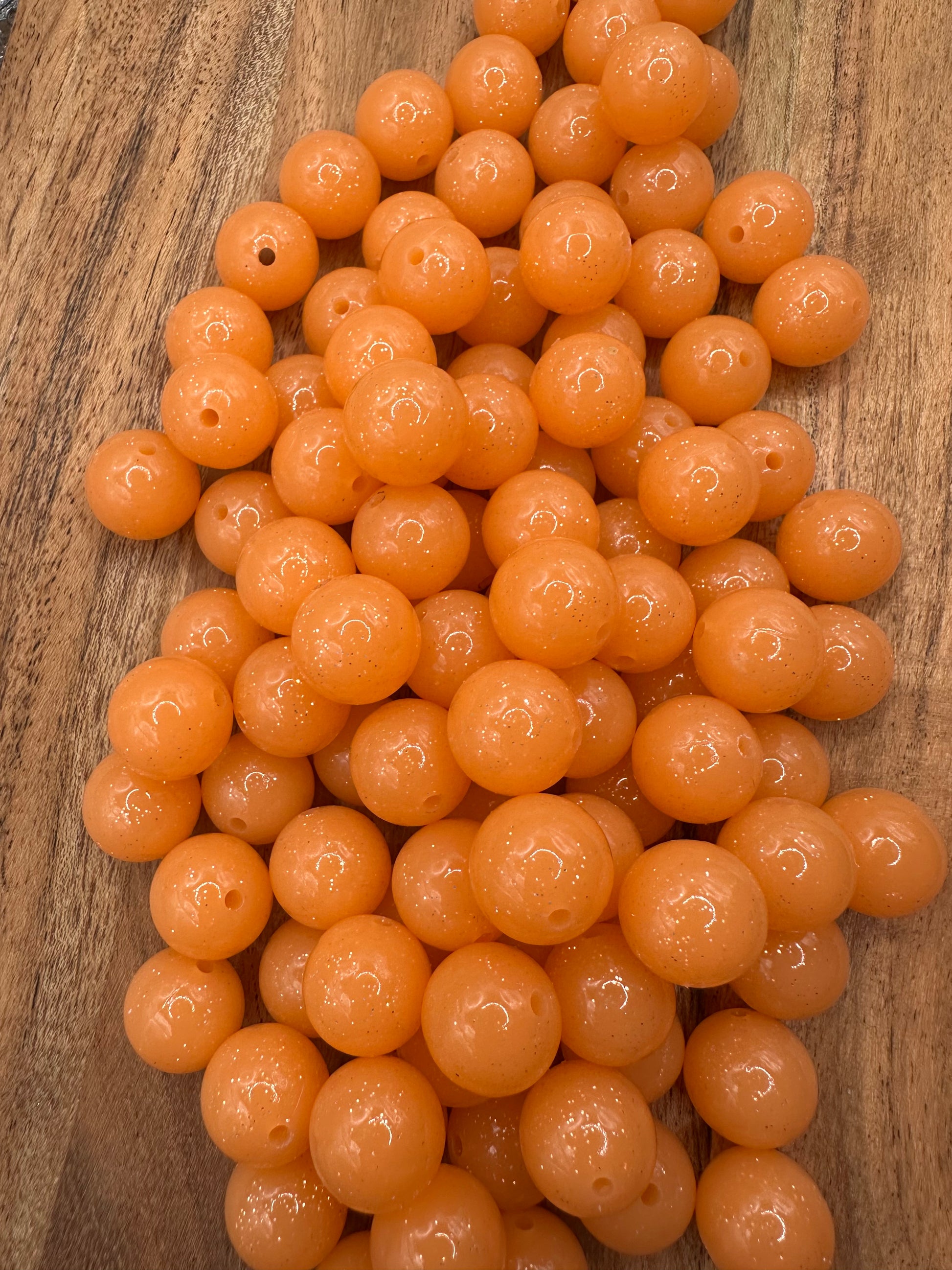 Neon Orange Liquid Glitter- Silicone Bead 15mm