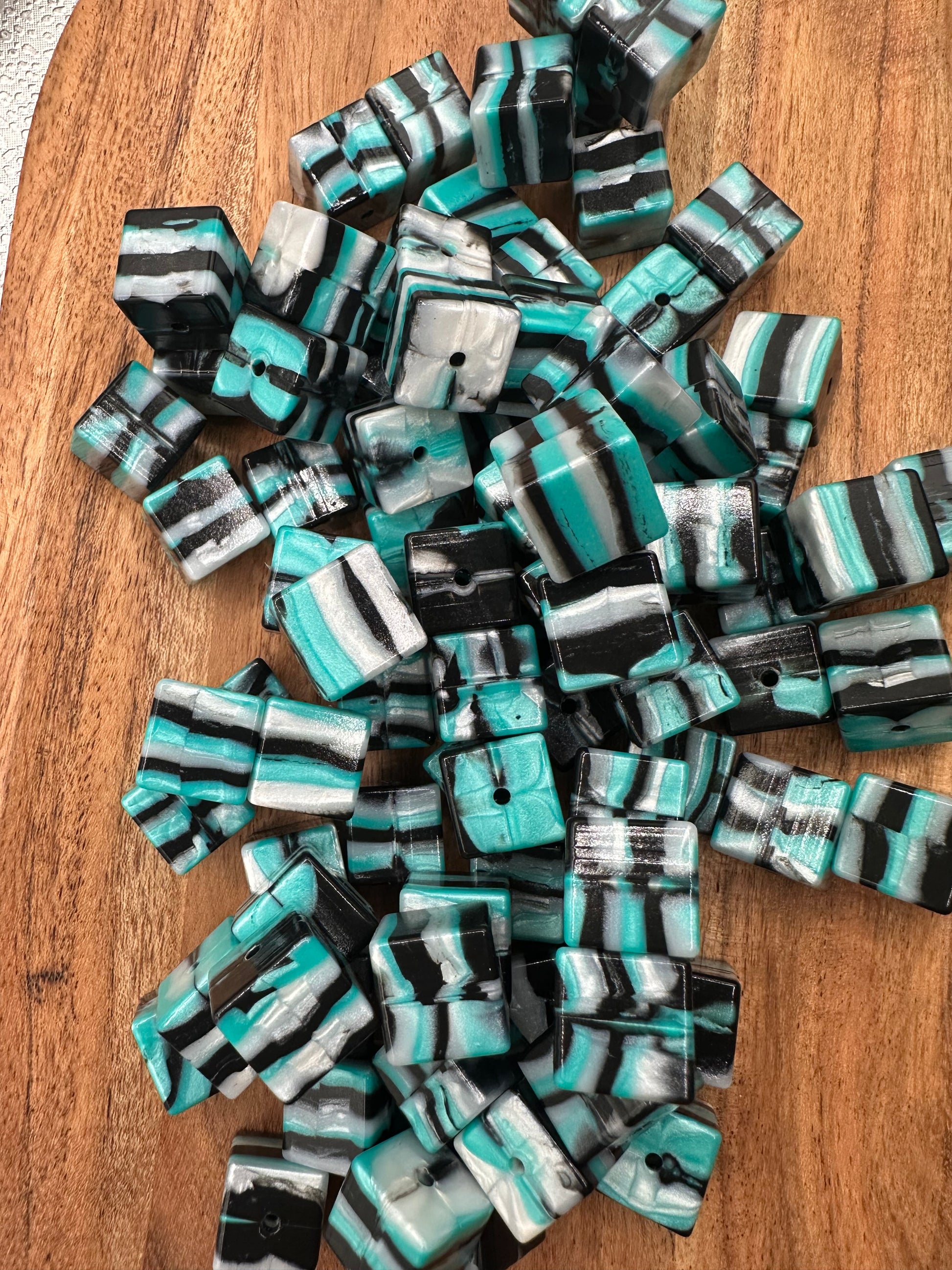 Turquoise & Black Swirl Cubes- 15mm Beads