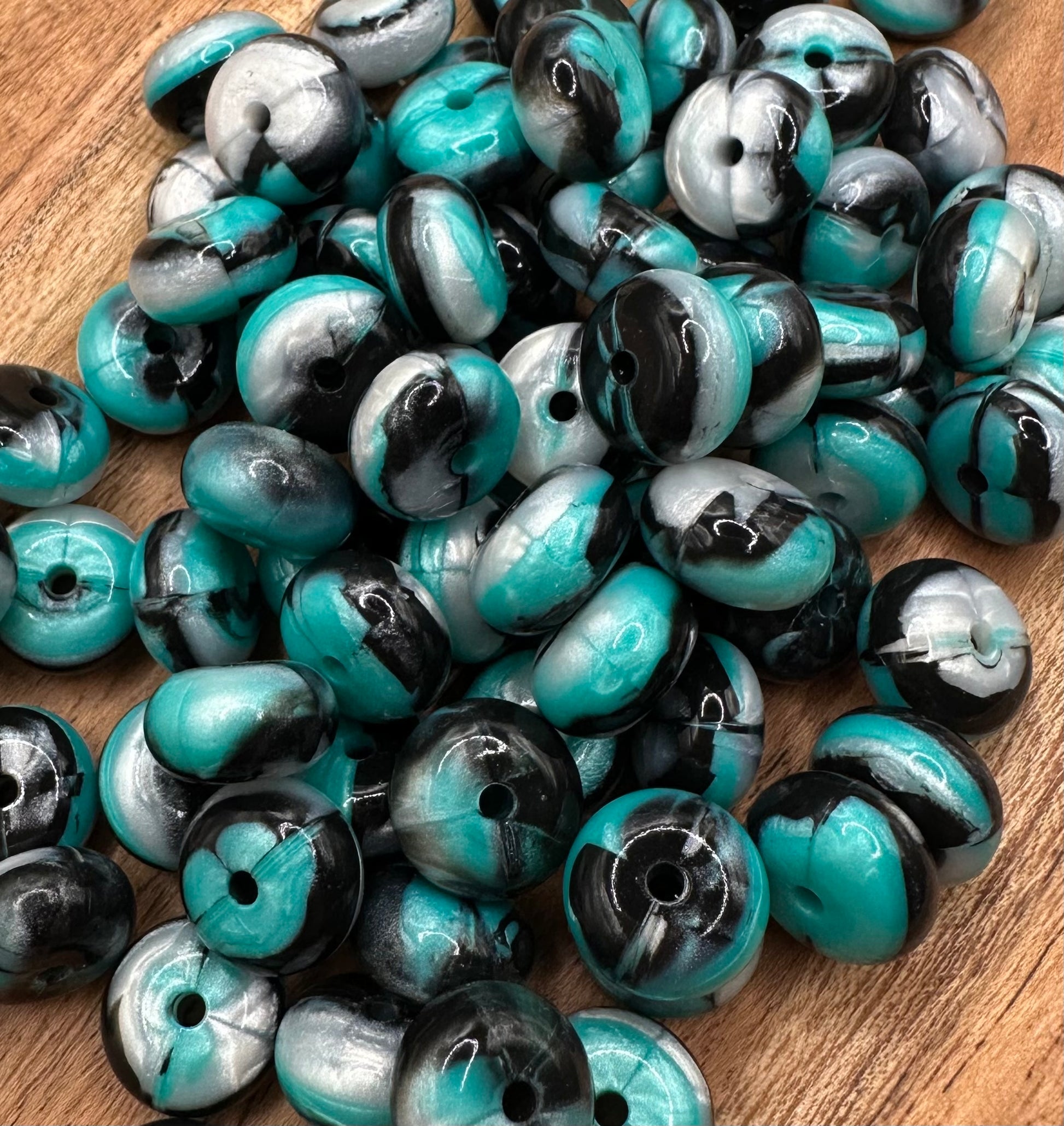 Turquoise & Black Swirl- Liquid Silicone Bead Abacus 14mm