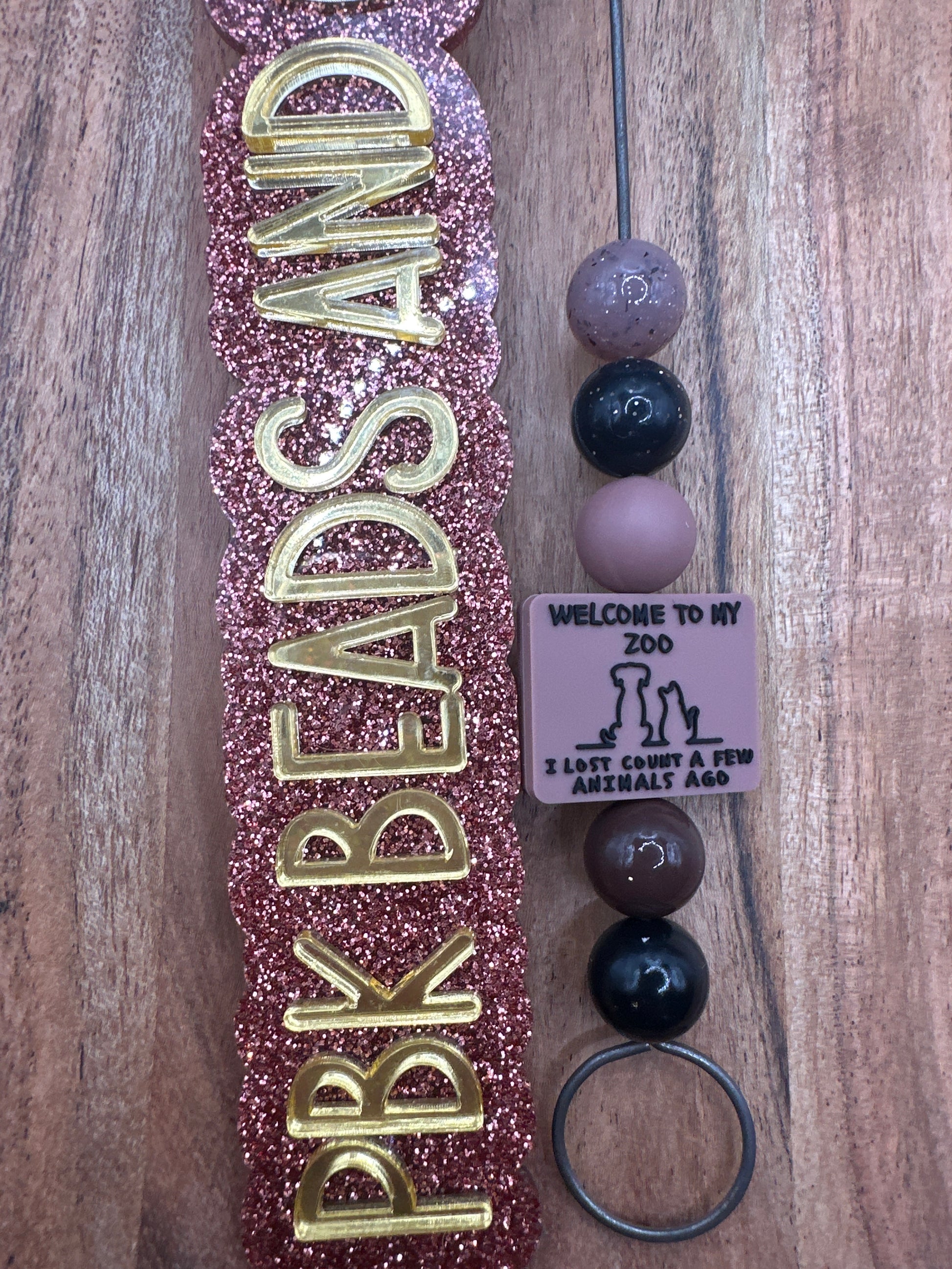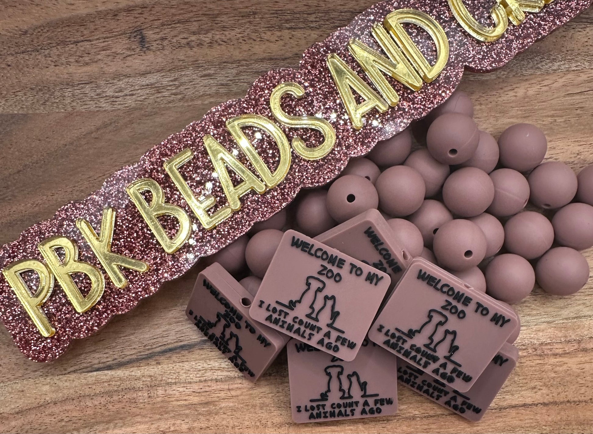 Matching beads (bottom to top)-black liquid, brown liquid, zoo brown solid (custom matching beads), midnight glitz, and brown speckle liquid glitter.